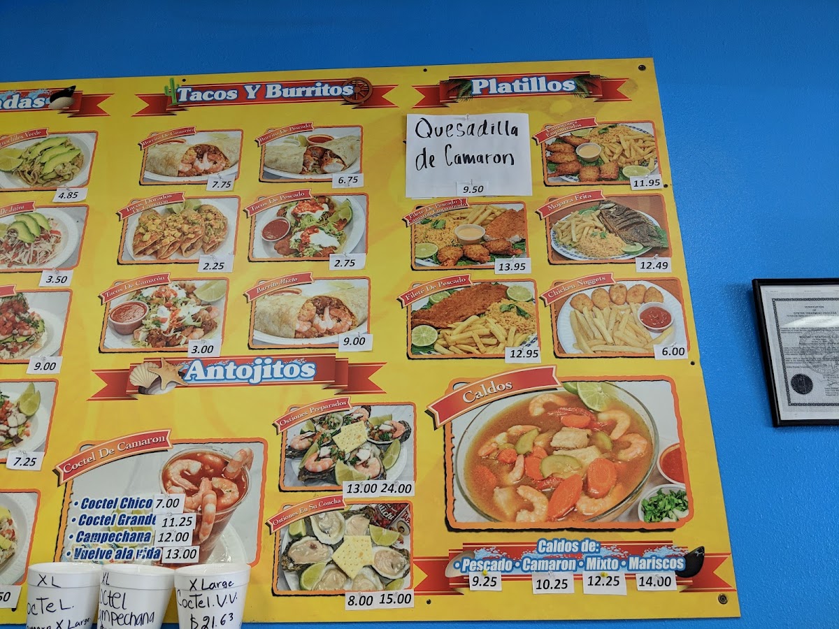 “ I stumbled upon this family-run marisco joint. Friendly and fast service, they take credit card. Ordered a super mixto ceviche that had every kind of seafod on there, and 2 orders of tacos Dorado, which are deep fried shrimp tacos with sauce and avocados on top. Very delicious! Great for hot summer days ”